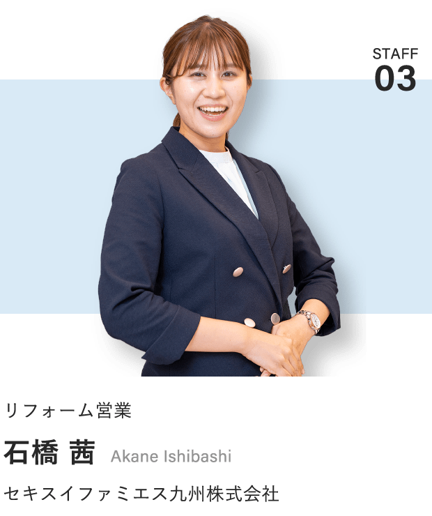 長年受け継いできたオーナー様とセキスイハイムの信頼関係をより強固なものにできるよう、これからもお客様に寄り添う気持ちを忘れずに仕事に取り組んでいきたいです。